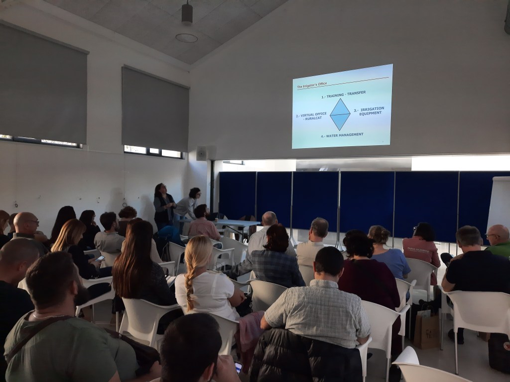 Then, Jaime Coello, engineer and researcher at the Forest Science and Technology Centre of Catalonia (CTFC), presented the LIFE project “Agroforadapt: Agroforestry systems for climate change, adaptation of Mediterranean agricultural and forest areas” and Mercè Soler, coordinator of the irrigator’s office of EA Tàrrega, introduced the local water management system and future challenges.